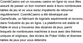 C’est pour ca qu’avant vous, des milliers de joueurs se sont fiés à nos éditeurs qui testent les casinos du marché français. Tache assez amusante mais qui peut s’avérer très utile pour vous, car en vous « mâchant » le travail, nous vous évitons les mauvaises expériences.